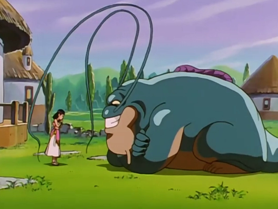 Es dirigeixen cap a un altre planeta on hi ha una bola de drac, Gelbo. Quan hi arriben, veuen una noia que té una bola de drac lligada al cabell i que tot el poble és amb ella. Són informats de que un monstre, en Zunama, atemoreix la població. En aquells moments el monstre arriba i la Lena és obligada a casar-se amb ell. En Goku els proposa ajudar-los a canvi de la bola de drac. Quan el monstre ja ha marxat, ideen un pla: en Trunks es disfressarà de Lena i l'emborratxarà perquè li puguin tallar els bigotis amb els que causa els terratrèmols.