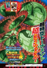 En la portada del volumen puede observarse a varios de los combatientes del Ultratorneo del Espacio-Tiempo : Piccolo y Son Gohan , quien se encuentra transformado en Supersaiyano de Primer Grado , del Equipo 1; Vegeta Xeno , transformado en Saiyano 4 al Ultramáximo Poder Rompedor de Límites , y Son Goku Xeno , transformado en Supersaiyano 4 , del Equipo 2, así como Super Número 17 , Willow y Metal Coola Xeno , transformado en Coola Dorado , participantes del Equipo 5.