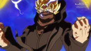 En mitad de todo el tumulto y confusión, ¡el Guerrero de Negro y el Saiyano de la Máscara Carmesí chocan en un enfrentamiento que hará temblar a todo el universo![2]