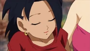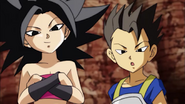 La pelea empieza y Kale se concentra en Cabba, a quien supera incluso en Super Saiyan, pero de repente Caulifla entra en batalla, transformándose en Super Saiyan 2 y deteniendo la pelea al decirle a Kale que no está interesada en Cabba en lo absoluto, haciendo que vuelva a su estado base. Caulifla se ve alegrada de que hayan encontrado a un miembro del equipo bastante fuerte.