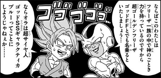 - Esta forma fue bautizada por Freeza como Super Freeza Dorado Dios Freeza Freeza (超ゴールデンフリーザゴッドFF Sūpā Gōruden Furīza Goddo Furīza Furīza¿?) en un cómic paródico de Naho Ooishi.