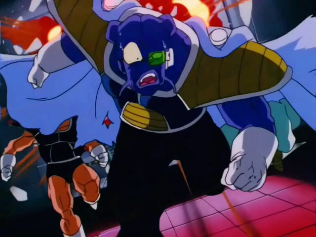 Durante la pelea que estaba siendo retransmitida desde el planeta, (uno de los de Freeza) finalmente acaba huyendo del panel de control por la energía liberada de los monitores, por culpa de Freeza y Goku en la cual mueren todos los soldados.