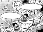 Luego de escapar de la cueva pirata, Goku siguiendo al General Blue termino en esta isla.