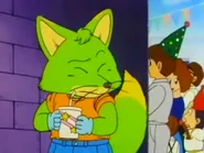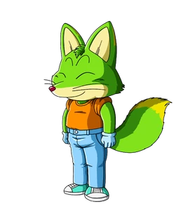 Casi todo su cuerpo posee un pelo color verde a excepción de su boca y la punta de su cola que son de color amarillo. Tiene una camiseta anaranjada. unos vaqueros azules y zapatillas blancas.