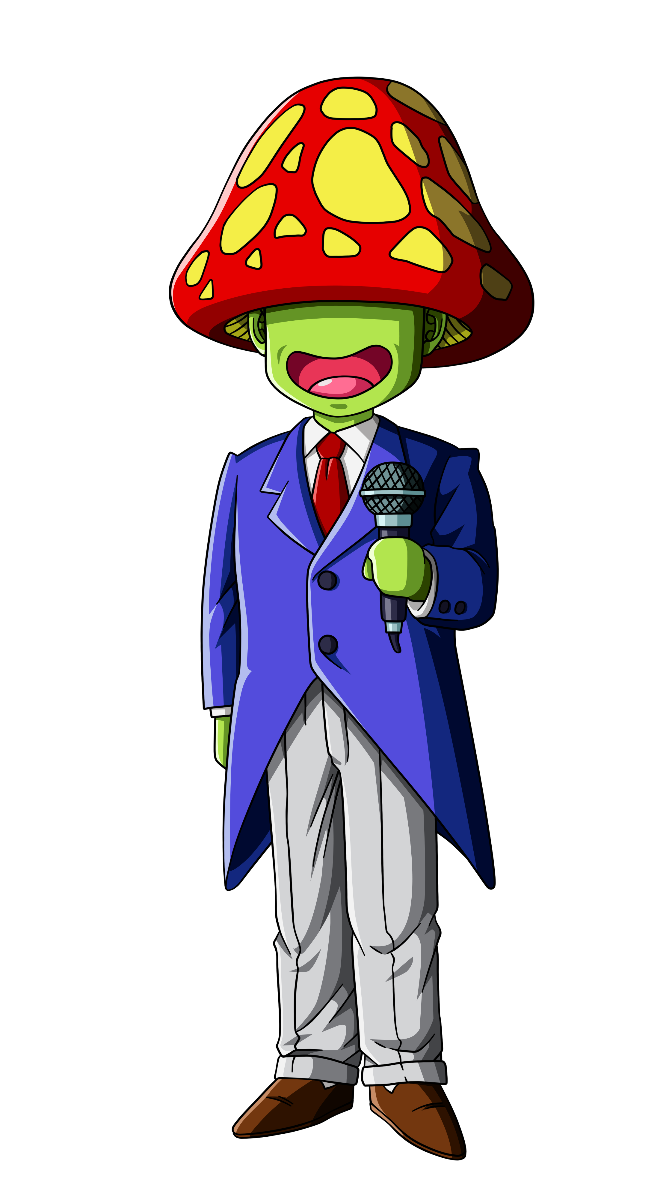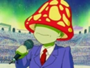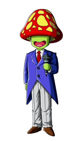Él es pequeño de estatura, su piel es de color verde, no tiene nariz, y tiene un hongo en la cabeza que le tapa los ojos. Usa un traje violeta, con una camisa y corbata roja, pantalones blancos, zapatos marrones y tiene un micrófono en la mano. El anunciador de la Tierra, es muy similar a él en actitud, y parece capaz de conseguir a la multitud.