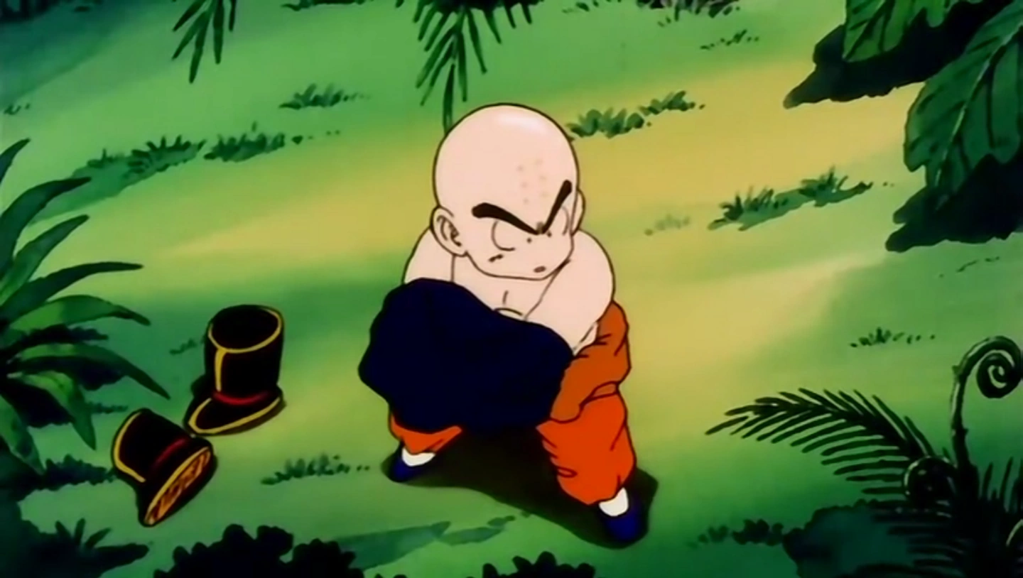 Krilin entrenando en la zona de los Residuos de Espinaca