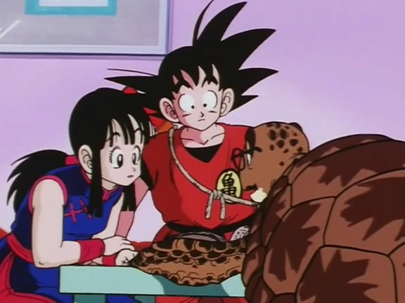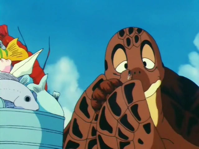 Tortuga Marina asustado por Lunch en Dragon Ball: Una gran aventura mística. Umigame y Chi-Chi |