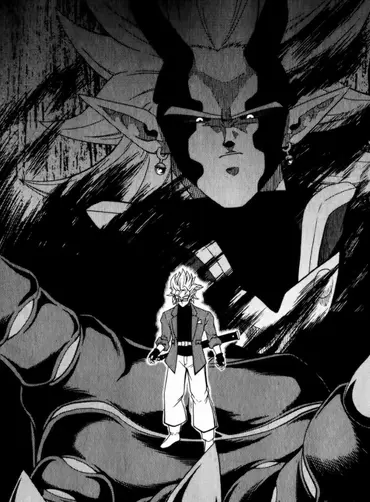 The skies above the Earth crackled with energy as two immensely powerful beings faced each other in an epic battle to the death. Demigra, an ancient and malevolent sorcerer with a thirst for power, had escaped from his prison in the Demon Realm, intent on unleashing chaos across the universe. Standing against him was Gogeta, the fused warrior formed by the incredible combination of Goku and Vegeta, whose strength was unmatched.
