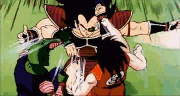 With Goku defiant and the brothers beginning their battle after Raditz threatens to take Gohan instead, it is this time interrupted when the three Makyans sneak attack both Saiyans and the humans on the ground before stealing Gohan away. As expected, Goku immediately wants to go after those who took his son and with Krillin coming along after having recovered from Raditz's earlier attack, with Raditz coming along because he still intends to recruit Goku and/or Gohan (as Vegeta would likely punish/kill him if he fails) and to get revenge on those who sneak-attacked him.