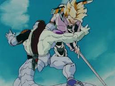 Sure enough, upon discovering Raditz's weakness with his tail, Garlic Junior keeps his foot on it while gleefully and sadistically beating the long-haired Saiyan to a pulp; enjoying seeing Raditz - terrified that he's going to be killed and unable to fight or flee - begging for his life, with Raditz's scouter been destroyed in the process.