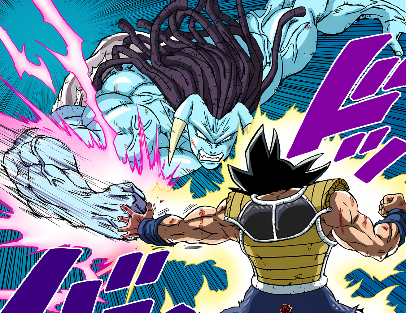 As expected, the fight stops quickly when Raditz sees both his parents, while Bardock also recognizes Piccolo as a Namekian (due to his time with Monaito on Planet Cereal when he ended up fighting Gas), which stuns Piccolo as he realizes his own heritage and that he's not a demon as he initially believed.
