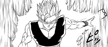 Advanced Ultra Ego (AUE) - Vegeta's hair is purple just bigger like SSJ3's. His eyes are purple. Vegeta's final form which is above Beerus.