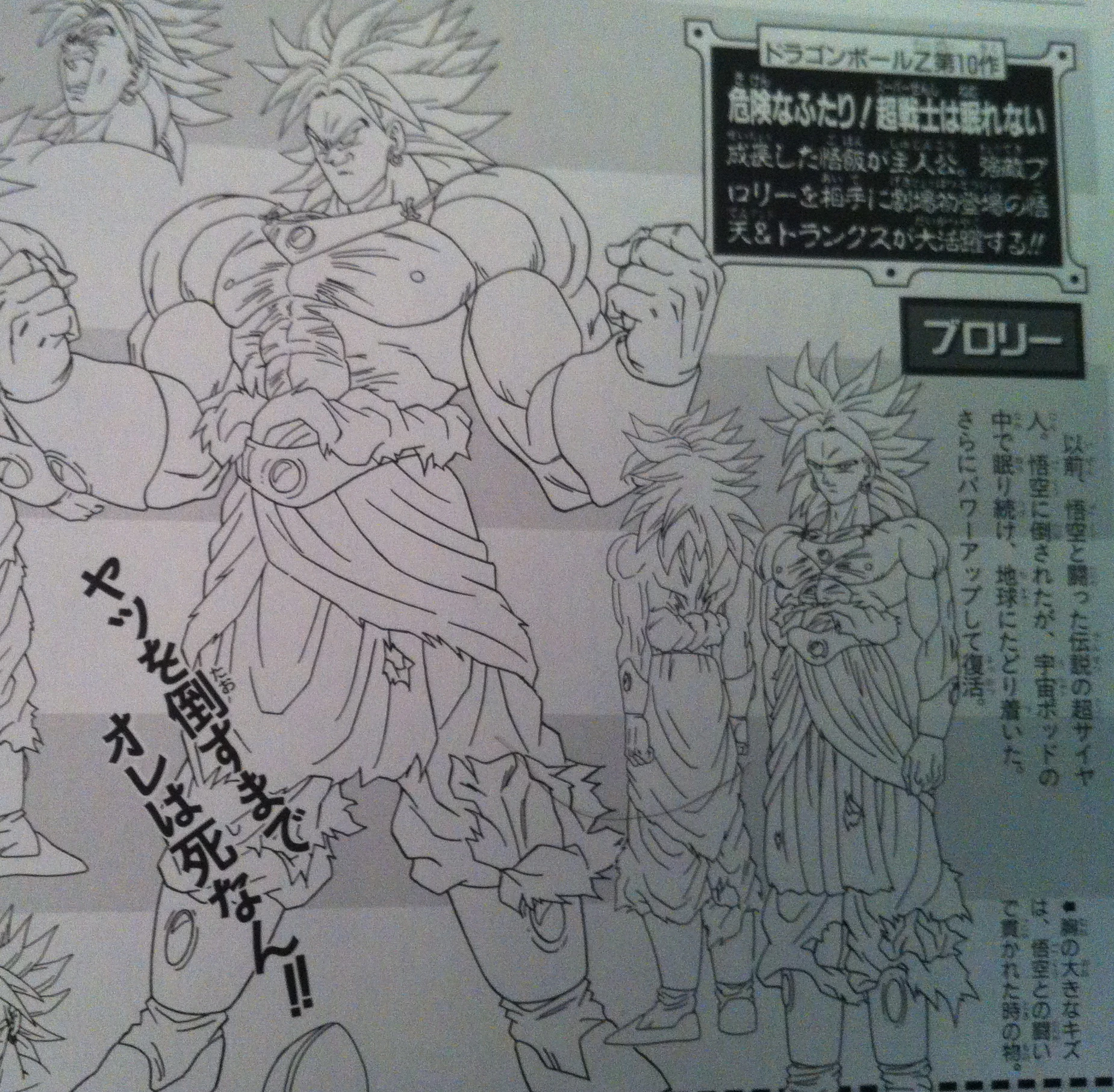 Lors du combat qui s'ensuit, Son Gokû, Vegeta, Trunks du Futur, Son Gohan et Piccolo sont écrasés par Broly, qui semble indestructible.