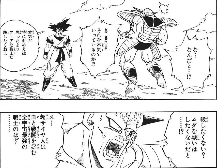 Seul Son Gokû trouve la force de se relever et réussit finalement à vaincre le monstre (qui venait de commettre un parricide en massacrant son propre père) que grâce à l'énergie combinée de ses compagnons.