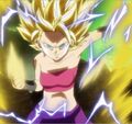 et est prêt à remplir son rôle autant qu'il le peut. Plus tard, elle sauve Son Goku affaibli de Koitsukai, Panzia et Boraleta, en les reversant. Tandis que Son Goku la remercie, elle se transforme en Super Saiyan 2, ayant pris assez de repos grâce à Cabba, puis elle défie pour la deuxième fois Son Goku. Elle se fera rapidement dépassée et décidera de fusionner avec Kale pour former Kafla.