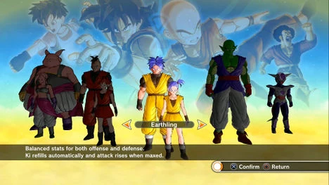Au début du jeu, le joueur crée un personnage qui lui servira d'avatar pendant toute l'aventure. Il a le choix entre cinq races : Namek, Majin, Saiyan, Terrien, ou la race de Freezer(Démon du Froid). Une fois le personnage créé, le jeu commence.