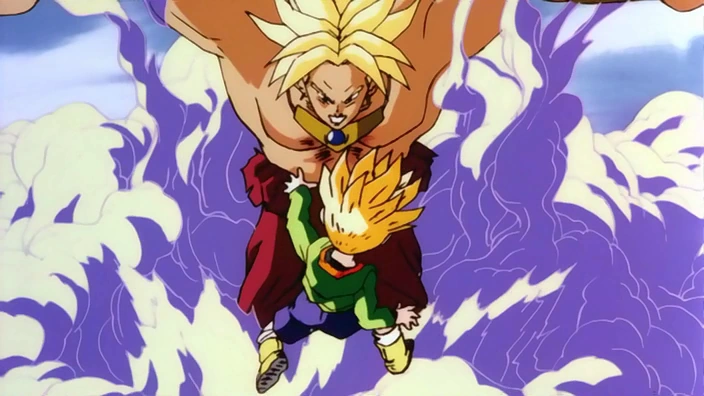 Le lendemain, à l'aube, Videl constate l'apparition d'un mystérieux individus, il s'agit de Broly qui s'en prend à elle très brièvement. Son Goten et Trunks s'en mêlent et un terrible affrontement à lieu. Le combat est cependant inégal et Trunks doit se résoudre à demander à Goten de trouver la dernière Dragon Ball afin de se débarrasser de Broly.