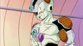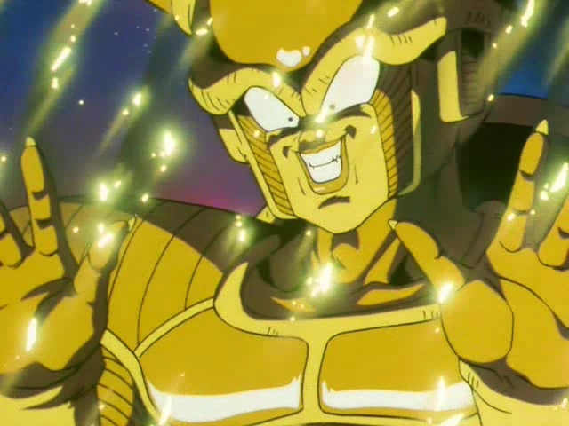 Il tue froidement Dende et par une attaque très rapide. Devenant totalement inatteignable pour Son Gohan, Krilin et Piccolo, c'est Vegeta qui prend le relais, mais malgré ses nouveaux pouvoirs, il est lui même dépassé par le niveau écrasant de Freezer. Le tyran prend un malin plaisir à le torturer, en raison de sa trahison.