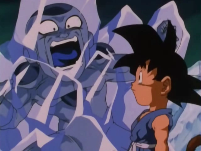 L'affrontement entre Gokû et Freezer débute. Freezer domine le combat, et ce en utilisant seulement 50% de ses moyens. Son Gokû exécute un Kaio Ken très dangereux mais le kaméhaméha décoché avec est arrêté d'une seule main. Pris de violence envers ce Saiyan, Freezer continue de corriger le jeune héro et ce, jusqu'à ce que Son Gokû génère un Genkidama qui semble venir à bout de son ennemi.