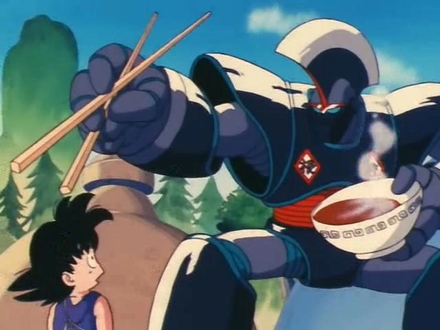 Il revint à l'attaque une minute plus tard, sous la forme d'un grand robot avec un bol de ramen. Il défia Gokû en espérant l'intimider, mais ce dernier ne prit pas peur et fût même enjoué de pouvoir se battre contre Oolong. Oolong prit peur et se transforma en chauve-souris pour tenter de fuir, mais Gokû le rattrapa avec son Kinto-Un.