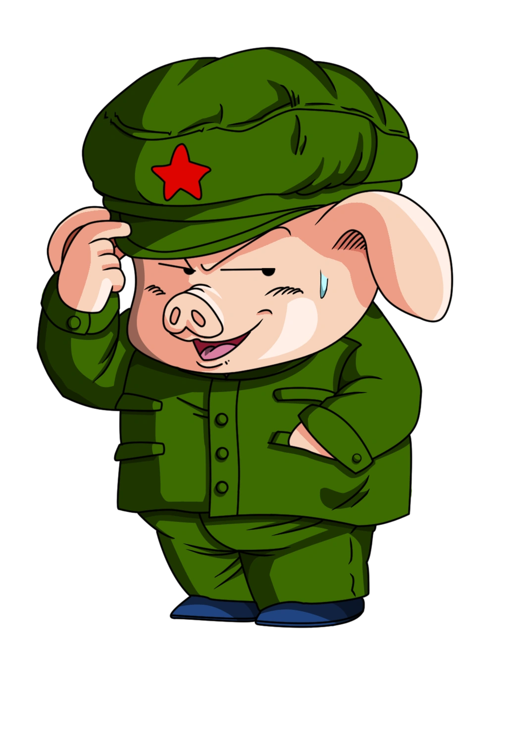 Oolong est un cochon anthropomorphe, de petite taille et à la peau rose clair. Il porte un uniforme de l'armée communiste chinoise de couleur vert foncé.