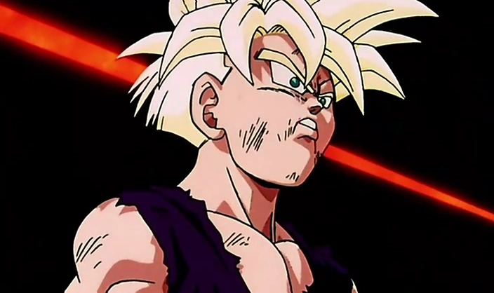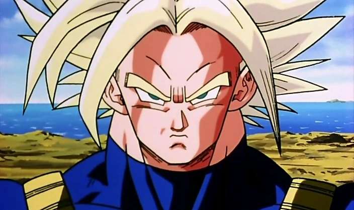 - Trunks change d'apparence, étant mi-Saiyan mi-humain, ses cheveux ne sont pas fixes. Il devient un guerrier charismatique, et fait preuve de raison. Toutefois, son père ne l'écoutera pas, en raison de sa fierté Saiyan. A l'instar de Son Gohan, il cache lui aussi un potentiel de grande envergure. Malheureusement, la transformation qui semble surpasser Cell en force pure ne rencontrera pas le succès escompté.