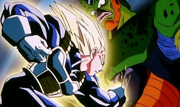 - Vegeta revient de son entrainement dans la salle du temps, pour la première fois dans le manga, il ne reviendra pas se venger de C-18, mais combattra directement Cell. Sûr de sa victoire, Vegeta commettra l'une de ses plus grandes erreurs, une erreur qui sera plus ou moins reprise lors de la résurrection de Majin Boo dans l'arc suivant.