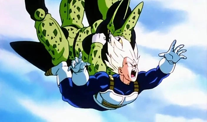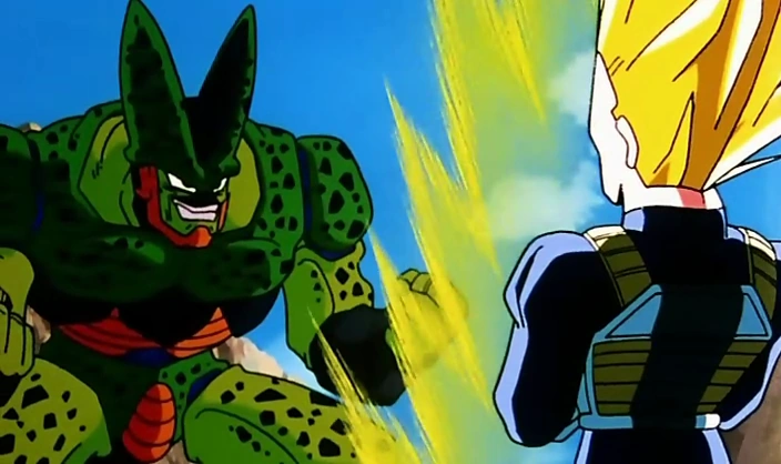 Trunks et Vegeta, après avoir fini leur entrainement, s'en vont à la rencontre de Cell. Vegeta se bat contre Cell et le domine. Frustré de la facilité du combat, il laisse Cell absorber C-18. Celui-ci atteint ainsi sa forme parfaite.