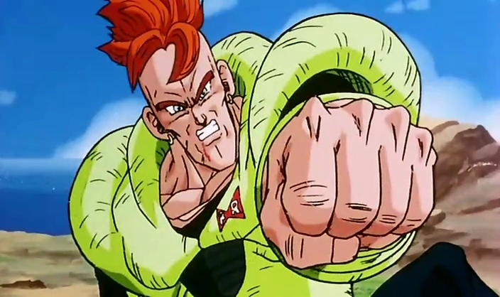 - Enfin, C-16, qui n'avait pas eu l'occasion de montrer l'étendu de ses pouvoirs devient une figure paternelle pour les deux jeunes humains artificiels. Alors qu'il était initialement prévu pour assassiner Son Gokû, il deviendra le premier rempart à s'opposer à Cell. Il est à noter que Cell venant du futur n'a aucune information sur les origines de C-16. Si son entrée en scène est relativement impressionnante, l'auteur se débarrasse rapidement du plus puissant androïde du Dr Gero au profit de la nouvelle apparence de Cell. A travers les différentes apparences de Cell, C-16 sera à plusieurs reprises humilié par le chef-d’œuvre du Dr Gero, mais devient l'initiateur de la déchéance de Cell.