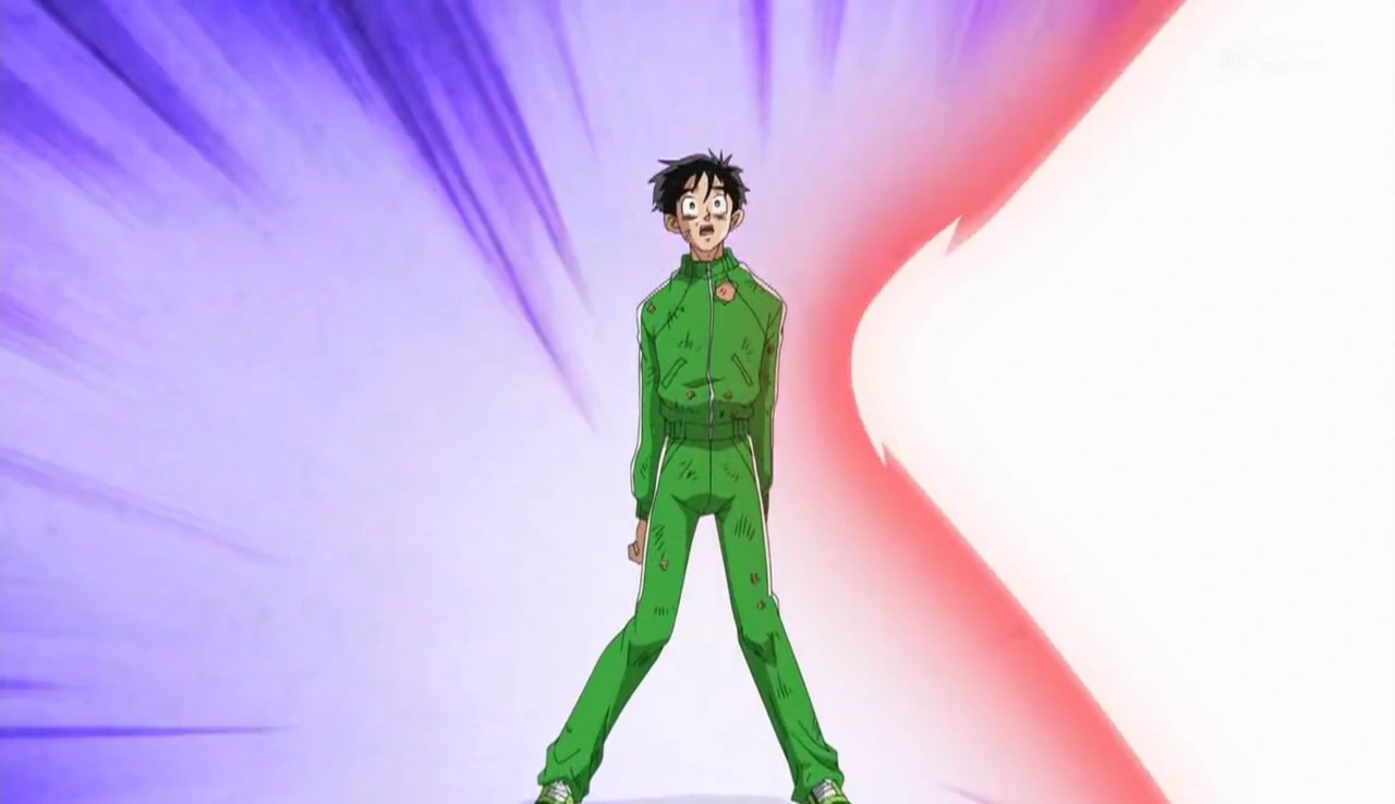 Son Gohan intervient mais il est rapidement mis évacué lui aussi, le scénario soulignant alors qu'il a probablement perdu beaucoup de ses pouvoirs.