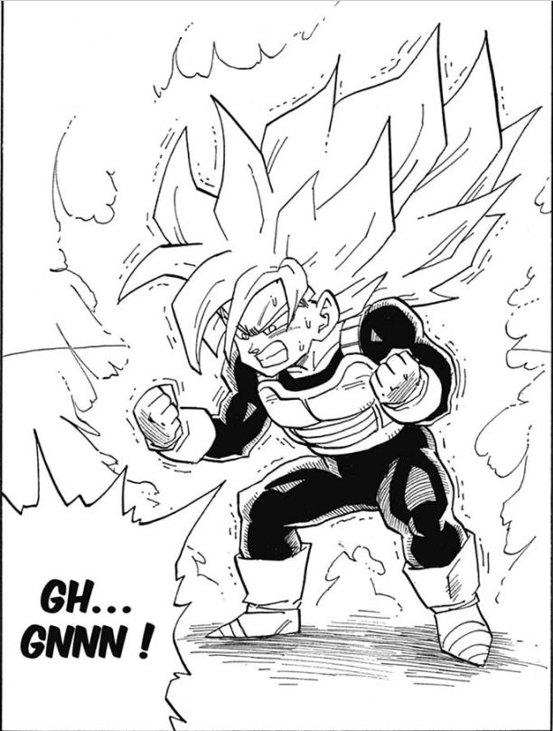 Il s'agit de la première transformation de Son Gohan, qu'il atteint péniblement après un long entrainement avec son père, Gokû, dans la salle de l'esprit et du temps. Gohan se sentait faible, incapable d'aider ses amis, alors pour se rattraper il a décidé de s'entrainer sérieusement.