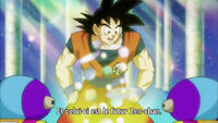 Le match d'exhibition voit s'opposer trois combattants de l'univers 7 contre trois combattants de l'univers 9. Lors de l'affrontement, les règles sont accomodées pour rendre l'événement plus divertissant pour les Zen'o, par exemple lorsque Loh a le droit de doper l'un de ses combattants. Finalement, l'équipe de l'univers 7 ressort vainqueur et Zen'o du futur est satisfait du spectacle.