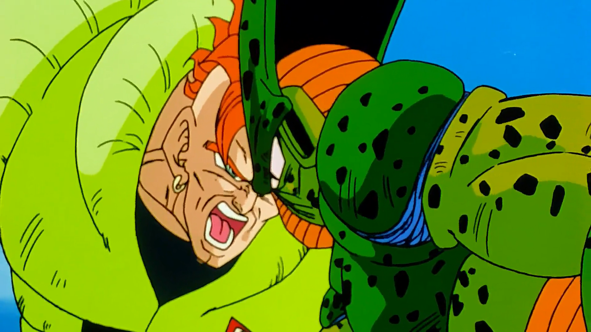 Androide 16 si scontra con Cell.