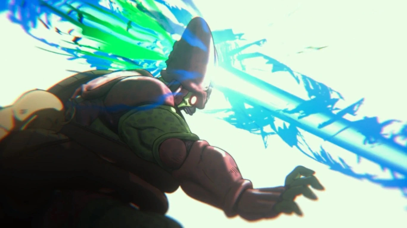 Cell Max esce dal suo contenitore e si dirige fuori dalla base segreta. Emette un'enorme sfera di energia distruttiva che quasi uccide il suo creatore sebbene i Gamma riescano a salvarlo in tempo. Gamma 1 e Gamma 2, seguiti da Gohan, Piccolo, Goten, Trunks e Androide 18, attaccano insieme il gigante che per rappresaglia colpisce con rabbia i suoi nemici che procedono a schivare a mezz'aria. Gamma 1 dice a Gohan e agli altri di mirare alla parte superiore della sua testa poiché il Dr. Hedo aveva posizionato lì un punto debole credendo che una situazione del genere potesse verificarsi.