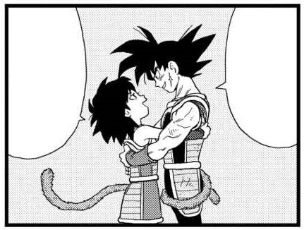Gine e Bardock abbracciati.