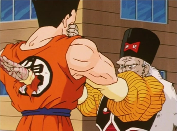 Yamcha si avvicina al luogo in cui erano e vede tanti cadaveri a terra. Chiede a due uomini chi è stato ad uccidere le persone e loro dicono che erano in due ma sono andati via subito. Yamcha pensa che è meglio chiamare anche gli altri. I due esseri sono gli Androidi preannunciati e ora sono in cielo e stanno guardando Yamcha. L'Androide 19 prova a vedere chi sia l'uomo con la forza così elevata e controllando tra i dati che ingloba dice che dovrebbe essere un umano chiamato Yamcha con una probabilità del 96%. L'Androide 20 dice a 19 che potranno ricavare una grande energia da Yamcha. I due scendono a terra alle spalle di Yamcha. Quest'ultimo si volta e chiede ai due, ritenendoli comuni cittadini, se hanno visto le persone che hanno combinato questo disastro. I due lo fissano e Yamcha nota che negli indumenti hanno il logo con il fiocco del Red Ribbon, capendo così che sono loro. Androide 20 lo afferra per la testa chiudendogli la bocca e lo alza da terra. I due sono in mezzo alla strada ma all'improvviso un camion di carburante passa di lì e per evitarli devia e va contro una stazione di servizio creando un'esplosione. Ciò viene avvertito dagli altri guerrieri Z. Yamcha non riesce a muoversi e, circondato dalle fiamme del'esplosione, gli viene trapassato il torace dalla mano dell'Androide 20.