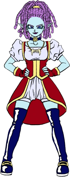Come per gli altri membri degli Heeter è caratterizzata dai capelli rasta, dalle orecchie a punta e indossa una collana con dei denti. È bassa e snella.