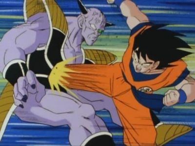 Saiyanina. Na szczęście dla Wojowników Z Ginyū nie potrafi wykorzystać całego potencjału z nowego ciała i w konsekwencji jest słabszy niż przed zamianą. Następnie obaj z Jeice lecą w kierunku statku Freezera. Kiedy docierają na miejsce nawet Kurilín początkowo nie poznaje, że w ciele jego przyjaciela kryje się wróg. Dopiero kiedy ten uderza go w głowę wszyscy są pewni, że to nie Son. Rozpoczyna się kolejna walka w czasie której na miejsce dociera osłabiony Gokū w ciele Ginyū, ale w ferworze walki udaje mu się odzyskać własne ciało. Ginyū próbuje natomiast przejąć ciało Vegety, ale przeszkadzają mu w tym Wojownicy Z rzucając pomiędzy nich żabę. W konsekwencji Ginyū zamienia się ciałami z żabą. Niestety ciało Gokū jest po walce jest bardzo poobijane i osłabione. Nie mając już magicznych fasolek przyjaciele nie wiedzą co zrobić, ale Vegeta wpada na pomysł umieszczenia Sona w jednej z maszyn do szybkiej regeneracji na statku Freezera. Następnie Kurilín zostaje wysłany w kierunku domu Saichoro po Dendego, który ma pomóc w użyciu nameczańskich kul (Ziemianie nie wiedzą, że mały Nameczanin już leci w ich kierunku). Vegeta natomiast ucina sobie drzemkę pod statkiem.