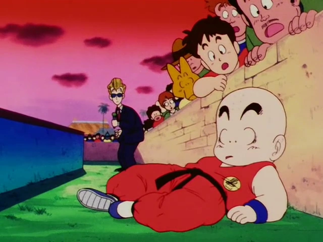 Kuririn engana Goku e dá um ataque, e os dois se lançam em vários ataques furiosos. Após Kuririn lhe atingir novamente, Goku desaparece. Ele está se movendo tão rápido que ninguém pode vê-lo. Ele de repente aparece perto de Kuririn e o chuta para fora do ringue.