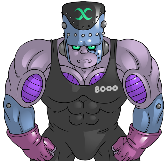 Androide 8000 teve como modelo o Androide 8 e, como seu modelo, lembra muito o Monstro de Frankenstein.