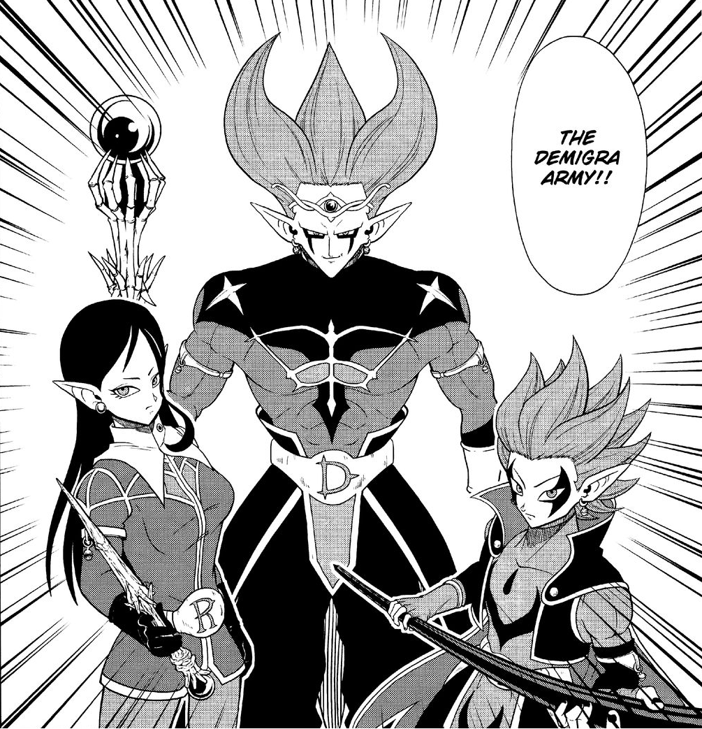 Na mesma hora que Goku derrota Aios após o Super Torneio do Tempo-Espaço, Chamel e Rober retornam até o esconderijo de Demigra, pois foram pegar o Fator Negro de Mechikabura, que ficou jogado após a derrota de Fu. Rober então insere em Demigra o Fator Negro, o transformando no novo Rei das Trevas.