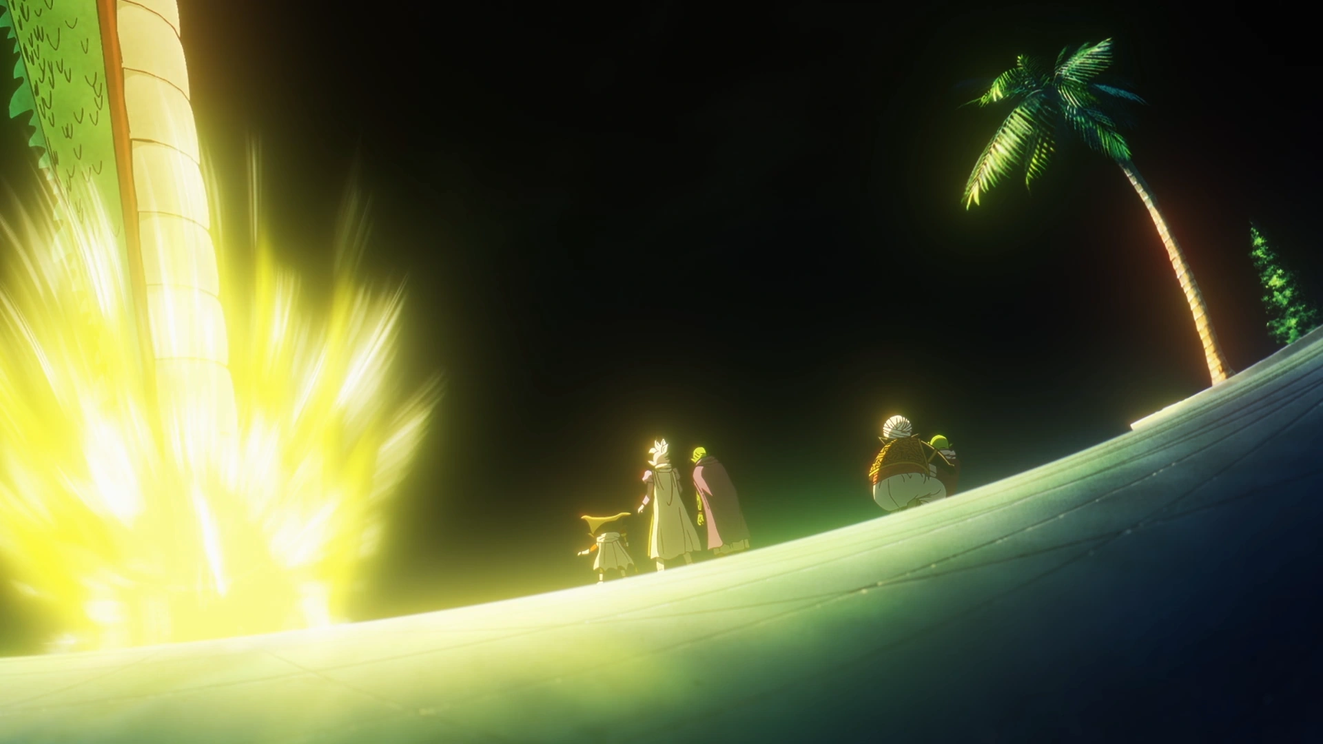 Da Plataforma Celeste, Sr. Popo e Dende observam a festa. Sr. Popo quer ir também, mas Dende o impede, pois eles devem observar caso algo aconteça. Logo então, a nave de Goma aparece e cai ali perto. Todos saem, e Neva diz que não vê um Namekujin há milhares de anos. Dende pergunta se Degesu é um Kaiohshin, mas ele diz que não, ele veio do Reino dos Demônios. Degesu revela que os ancestrais dos Namekujins também vieram de lá; como prova, ele diz que as orelhas de Dende também são pontudas. Goma então diz para Dende trazer as Esferas do Dragão, e ele nega.