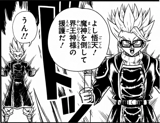 Gohan e Goten são capturados por Mira e levados ao Abismo do Tempo, onde depois, Towa extrai deles e dos outros patrulheiros o Fator Negro de Mechikabura, que foi absorvido pelos seus corpos quando Trunks o selou. Depois, eles são salvos por Demigra e Rober, mas eles continuam inconscientes e Trunks e Pan ficam cuidando deles enquanto Goku e Vegeta saem para enfrentar Fu.