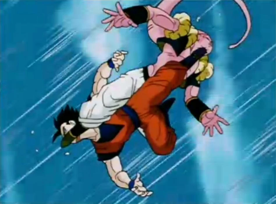 Majin Boo diz a Gohan que a culpa é dele por ser tão forte. Ele esperou passar o tempo até que Gotenks pudesse se fundir novamente, e decidiu fazer a explosão para desaparecer por um tempo. Gohan pergunta por que ele não o absorveu, mas Majin Boo diz que não o fez para ter um adversário à altura, e então os dois voltam a lutar.