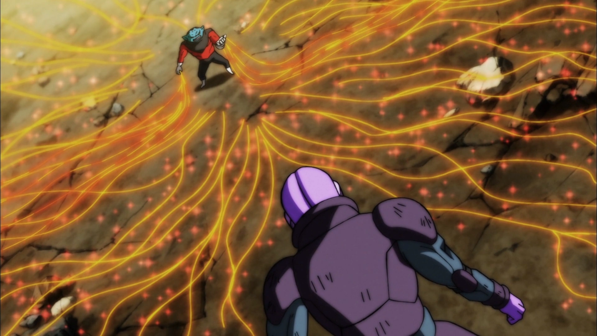 Quando Dispo cai da arena ao lutar com Hit, Kunshi usa suas cordas de energia para resgatá-lo e impedir que seja eliminado. Kunshi e Dispo se unem contra Hit, mas Goku aparece na forma Deus Super Saiyajin e luta contra Dispo sozinho. Kunshi então cobre o chão com cordas explosivas para que Hit não o possa atacar. Porém, Hit usa seu soco de energia invisível em Kunshi. Hit e Goku então trocam de oponentes, e Goku se transforma em Super Saiyajin Azul para passar pelas cordas explosivas de Kunshi rapidamente sem levar dano. Goku então golpeia Kunshi e o joga em escombros. Kunshi então salva Dispo novamente de cair do ringue, e diz que tentará eliminar Hit para que Dispo escape. Porém, Hit facilmente joga Kunshi para fora da arena, eliminando-o.
