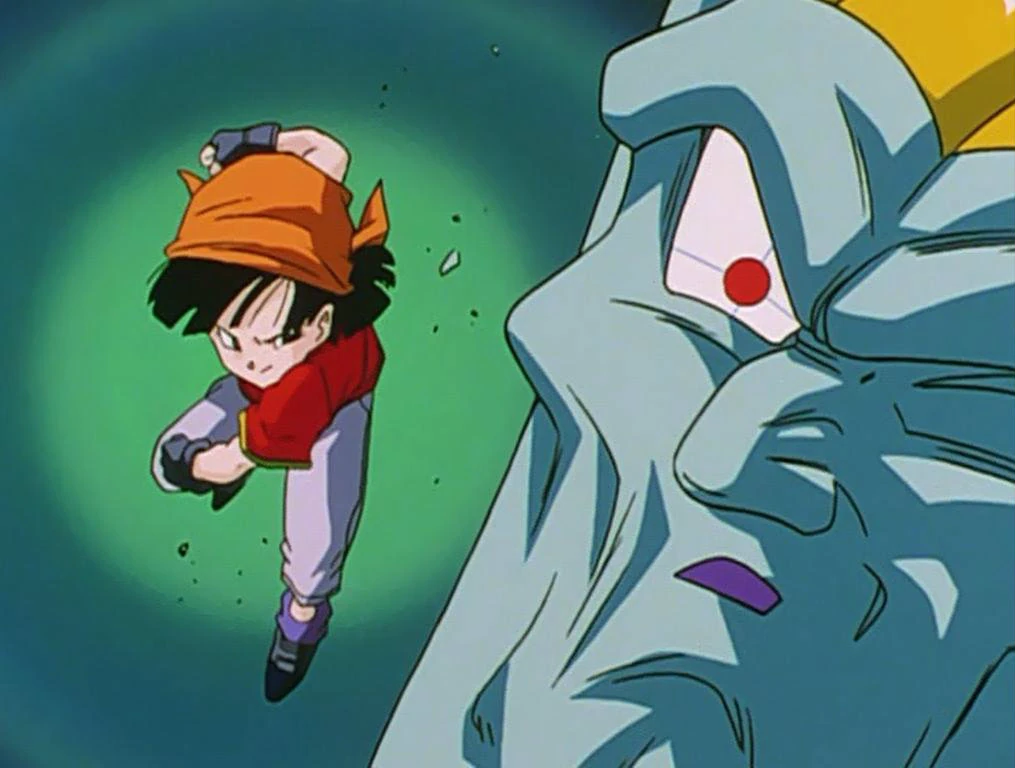 Trunks e Goku ficam chocados com a força de Pan, mas ela diz apenas que eles podem parar de tratá-la como criança. Quando General Rilldo se levanta, ele está completamente sem danos. Isso deixa Pan assustada, então Rilldo lança seu Bafo Metálico. Trunks consegue chegar a tempo e tirar Pan do caminho, mas o raio de energia o atinge e o congela. Trunks então desaparece.