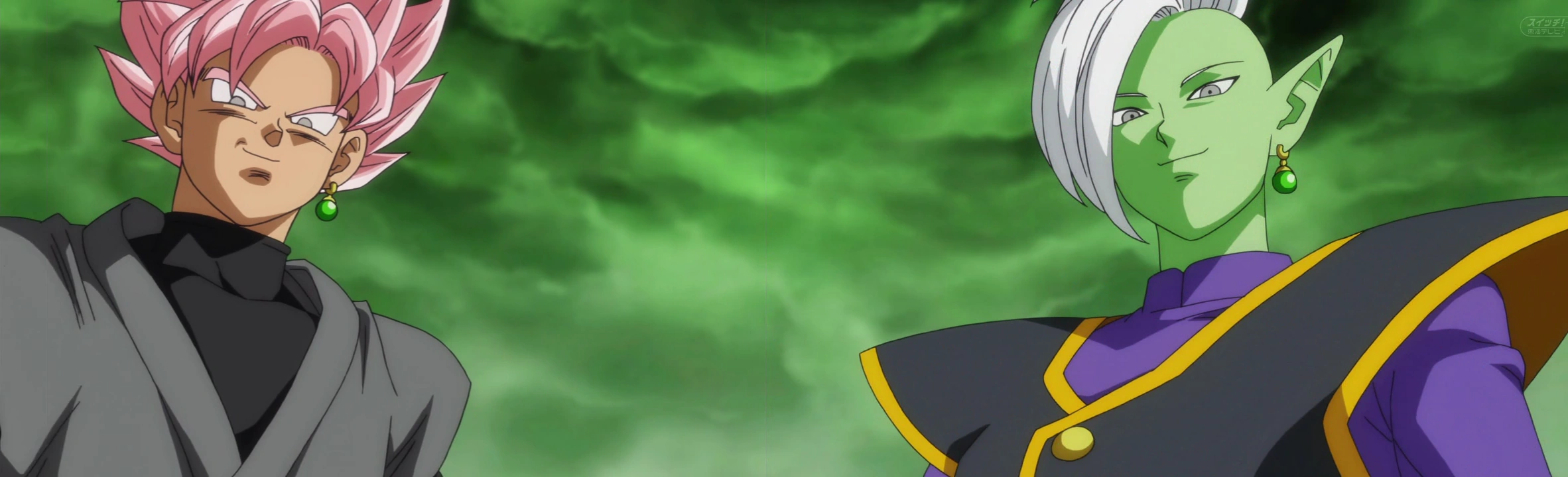 Um segundo Zamasu, o que já existia no futuro, aparece, tendo ficado imortal com as Super Esferas do Dragão. Enquanto Goku e Vegeta lutam com Goku Black, Trunks luta com Zamasu, que sempre se regenera e é impossível de se derrotar. Sem ter como matá-lo, Trunks usa a técnica Mafuba para prender Zamasu dentro de um pote de barro, mas o pote se quebra e Zamasu se liberta, assustado com o que Trunks fez. Goku e Vegeta também estão a ponto de derrotar Black, então, como último recurso, Zamasu e Black usam seus brincos Potara para se fundirem.