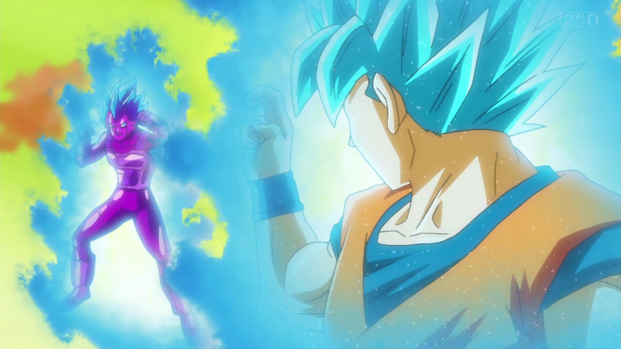 Durante sua luta com Kyabe, Vegeta demonstra que ainda há muitos níveis de Super Saiyajin, e que se Kyabe treinar, poderá alcançá-lo. Vegeta se transforma em Super Saiyajin Azul e derrota Kyabe com apenas um golpe. Na luta contra Hit, Vegeta se transforma em Super Saiyajin Azul, mas ainda assim é derrotado pelo poder do Pulo de Tempo.