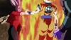 Dyspo and Hit charge towards each other again, but Dyspo's speed increases as he knocks Hit down. The gods of Universe 11 discuss Champa being flustered as Hit is getting pushed back, realizing that Hit is their ace warrior and if he goes down, the rest of Universe 6 will follow suit. The two Zenos whine about Dyspo's attack being too fast to see, and Grand Minister tells them he added a new recording function to their GodPads that allows them to see the attack in slow motion. Hit remarks that it feels like Dyspo is using Time-Skip on him. Top comments that through repeated battles, Dyspo's speed has surpassed the speed of sound and light, calling him their blitz captain.