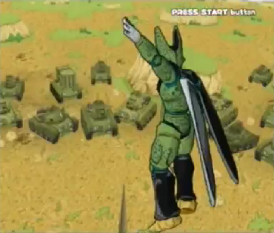 Perfect Cell prepares his All Clear to destroy the Earth's Military tanks in Super Dragon Ball Z